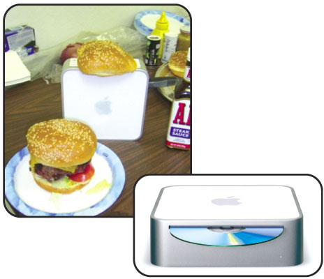 The “Mini” is 2" x 6.5" x 6.5" square and comes in a variety of configurations. The low-end model houses a 1.25GHz G4 processor, 40GB hard drive, a slot-loading CD-R/DVD-ROM optical drive, 256MB DDR SDRAM and ATI Radeon 9200 graphics chip with 32MB dedicated DDR SDRAM.